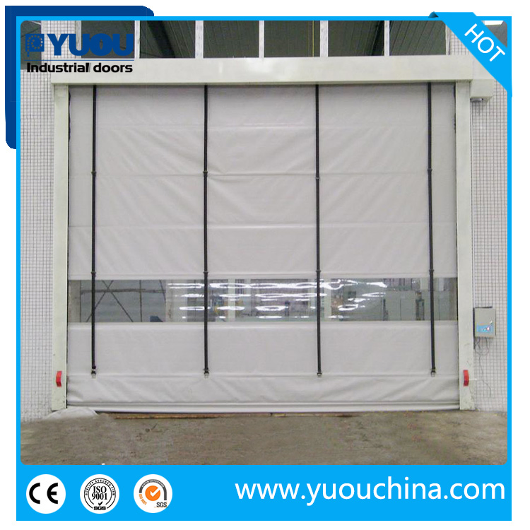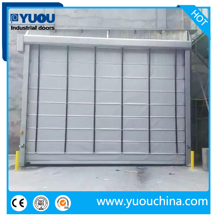 There are several high-strength aluminum rod were used to connect PVC fabric as a whole. When faced with big wind, such rods will offer big support. Special belt structure is adopted to lift door up and down by revolving roller.