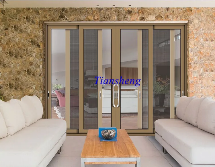 Double Glazing Aluminum sliding glass patio doorsThe 100F aluminium sliding window system of Tiansheng Architectuursystemen is simple to set up and mount, but unprecedented in the number of possibilities, which include: type of water drainage, compartment or channel drainage, and which cover str......