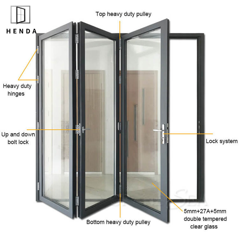 As 2047 Best Aluminum Framed Double Glazed 5 Fans Bifolding Thermal-break Stylish Modern Luxury Design Bi-folding DoorAluminium casement window/pushout window/opening window/double pushing window/folding window/bi-fold window/awning window tilt&turn window/folding up window/sliding windows/pvc w......