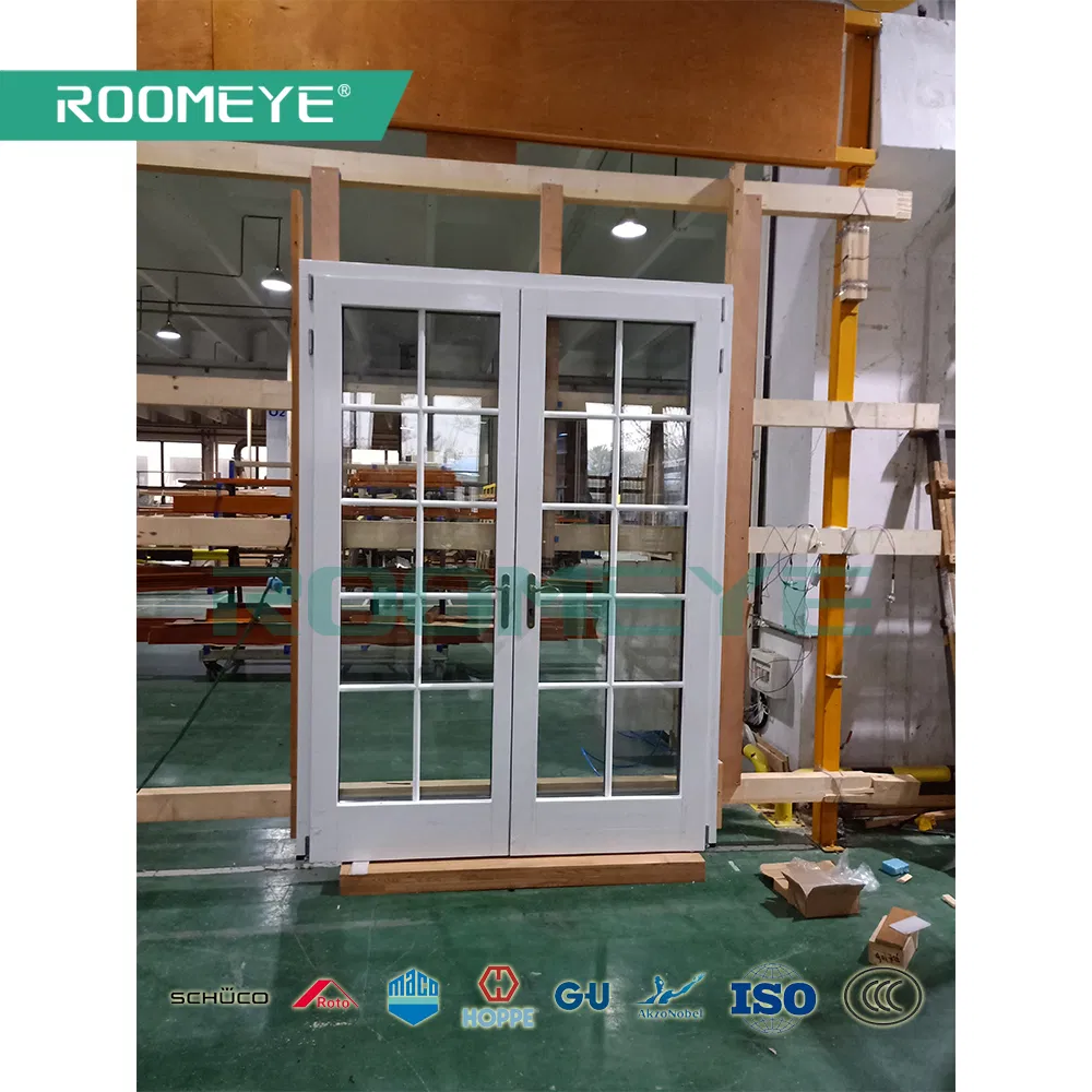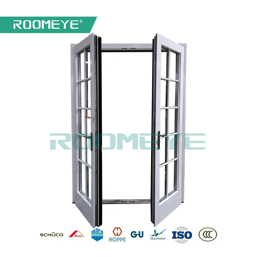 ROOMEYE wood with aluminum cladding grille design french door / casement door suitable for both commercial and residential construction. Multi- configuration provides you more choices. Low threshold design realizes barrier free passage. Standard Germany brand hardware support you a safety life.