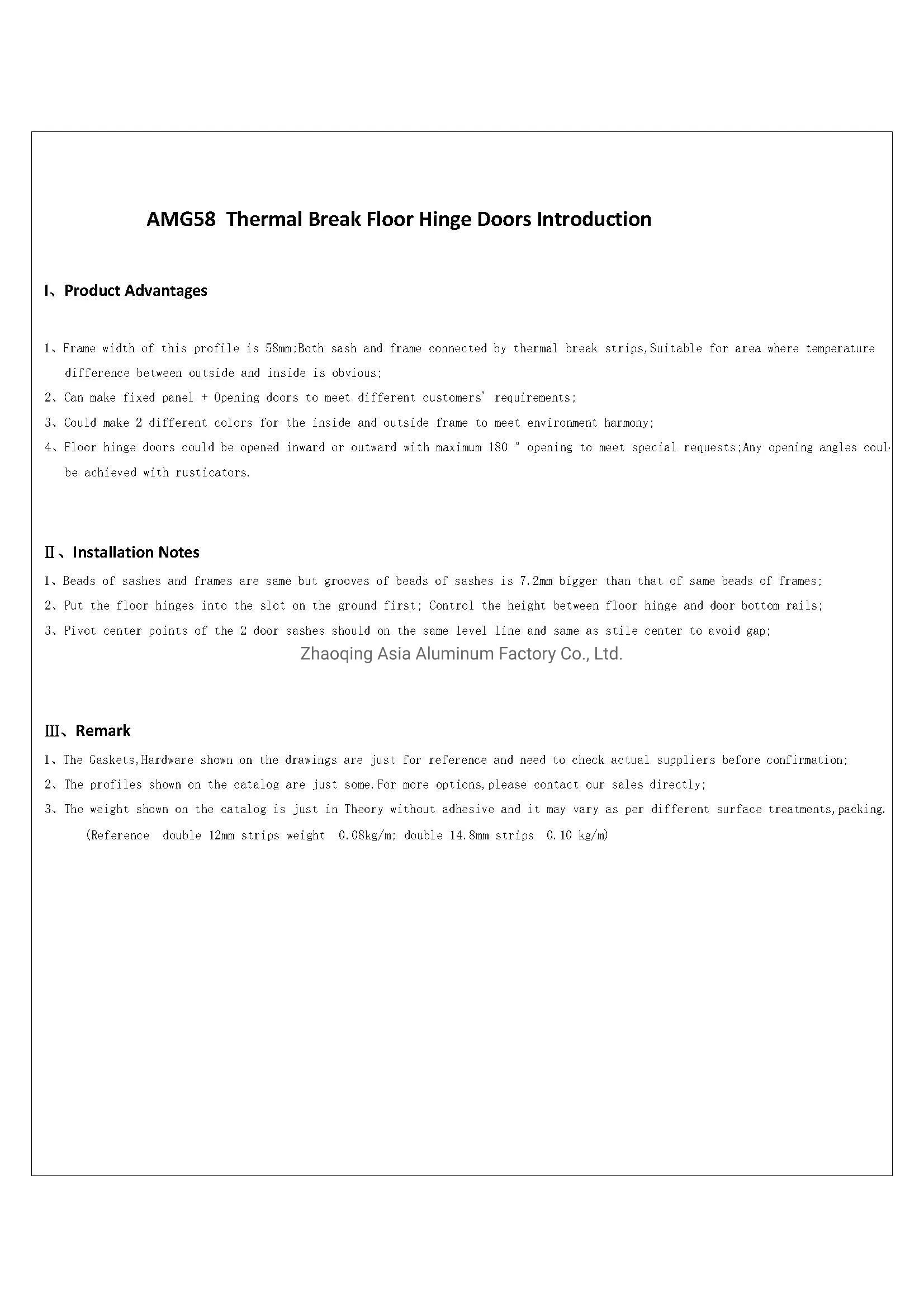 Product NameAluminum Floor Hinge Door/Aluminum Framed Door with Door CloserMain Materials Aluminum Profile Wall Thickness2.0mm Thermal breakProfile Brand AAG FinishPowder coating ≥40 microns Andozied ≥10 micronsColorWhite/Black/Grey/Wood Grain/ CustomizedGlass Type/TreatmentTempered G......