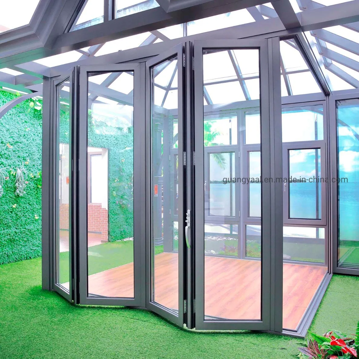 Germany Roto Hardware Double Glazing Aluminum Horizontal Folding Doors Bathroom Door OEM ODM Factory