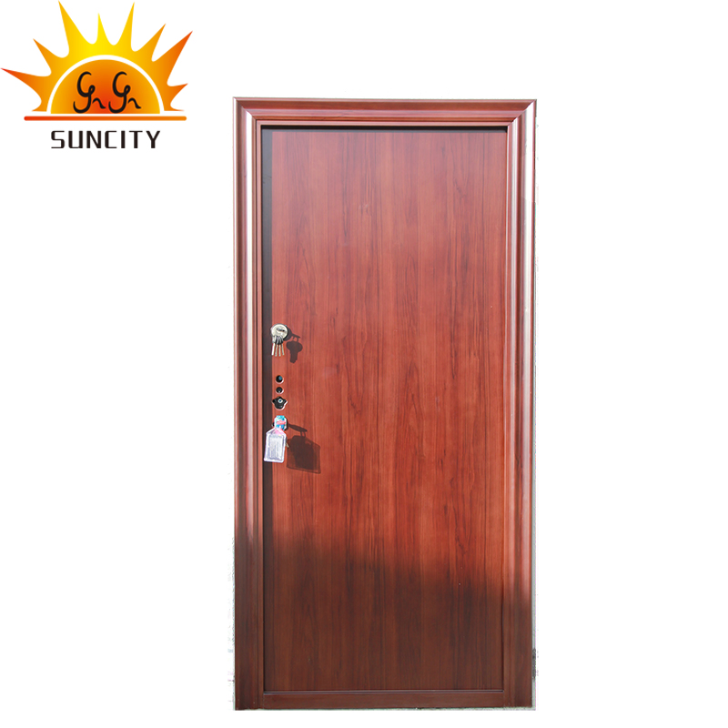 Latest design steel safety single door design (SC-S013)NameDescriptionSecurity Steel doorLeaf(face)0.5mm-1.0mm cold rolled steel panel(Exterior door)frame0.8mm-2.0mm cold rolled steel panelSecurity Steel Door AdvantagesMaterialCold Rolled Steel: Phosphatized treatment, stable performance, long lasti......